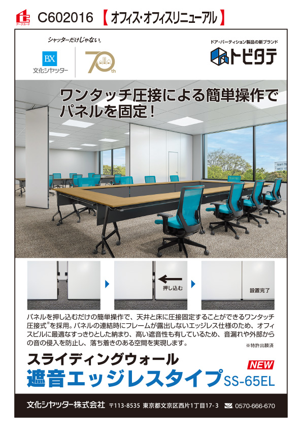 スライディングウォール 遮音エッジレスタイプ SS-65EL