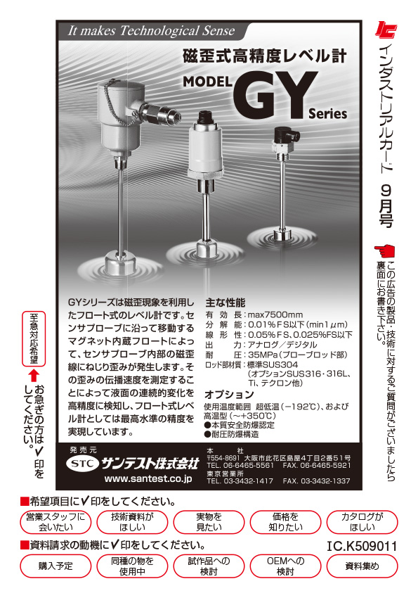 磁歪式高精度レベル計 MODEL GYシリーズ