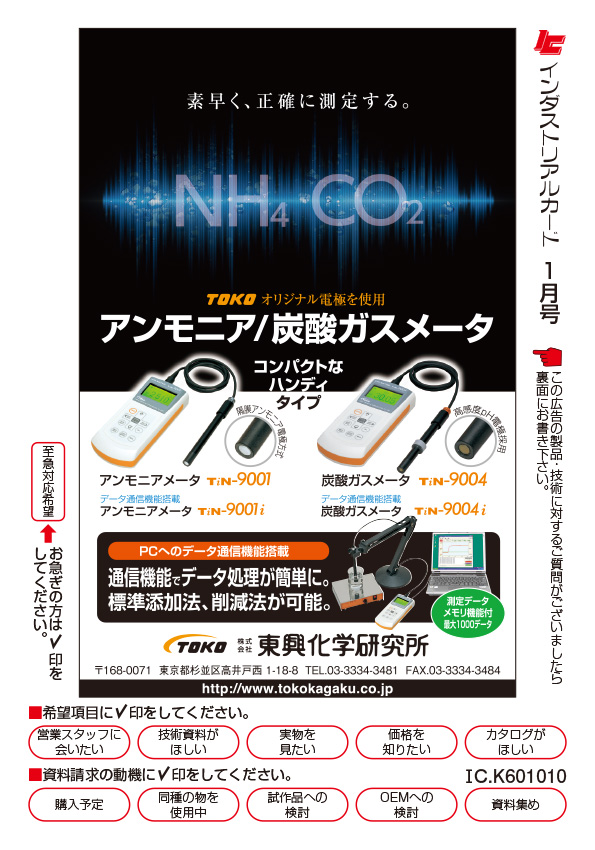 アンモニア/炭酸ガスメータ TiN-9001 他