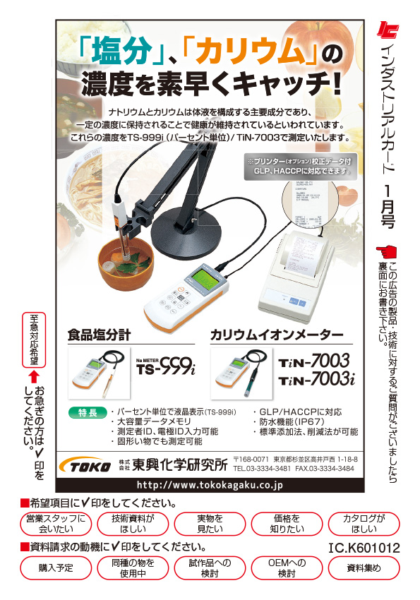 食品塩分計/カリウムイオンメーター