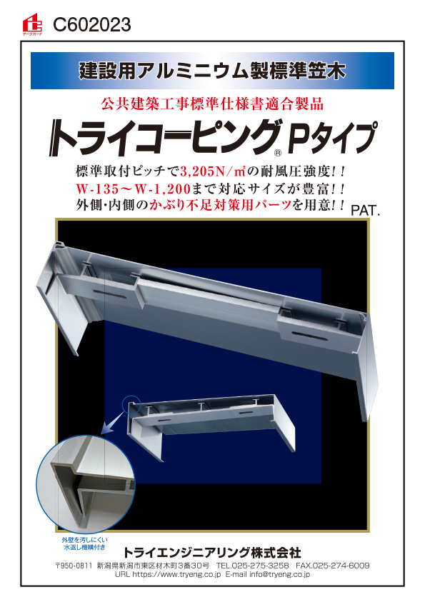 建設用アルミニウム製標準笠木 トライコーピング Pタイプ