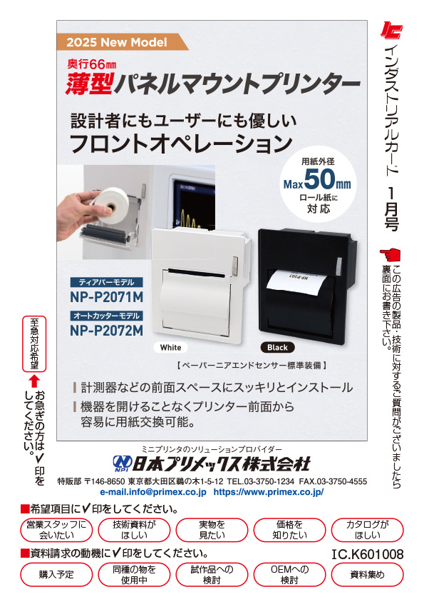 薄型パネルマウントプリンター NP-P2071M / NP-P2072M